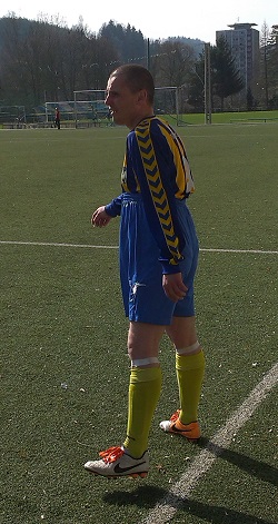 O pár minut později chce J. Vrána pomoci výběhem zlikvidovat dlouhou nahrávku před dobíhajícím útočníkem, to se mu však nedaří, M.Šefr míč vypichuje a pohodlně vyrovnává - 1:1. Hra se na chvíli srovnává a z normálu vybočil až závar před naší bránou, kdy si vybírá horší chvilku M. Rieger, který když už si vzal čočky, asi zapomněl naslouchátko :) a přeslechl brankařovo nepřeslechnutelné mááám. Situaci si kluci po zápase vyříkali a tak se prý příště raději vypaří.